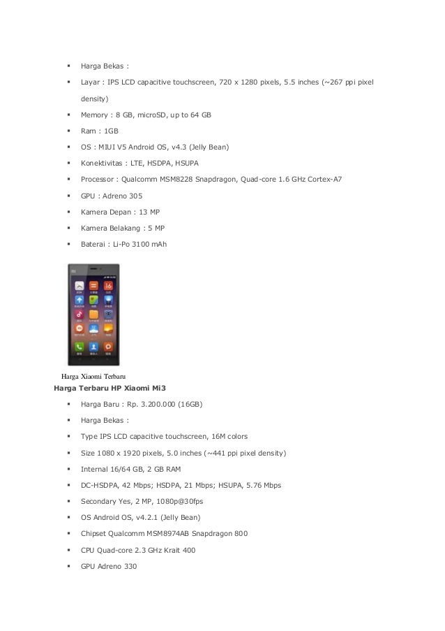 Daftar Harga Dan Spesifikasi Hp Xiaomi Bulan September via www.slideshare.net